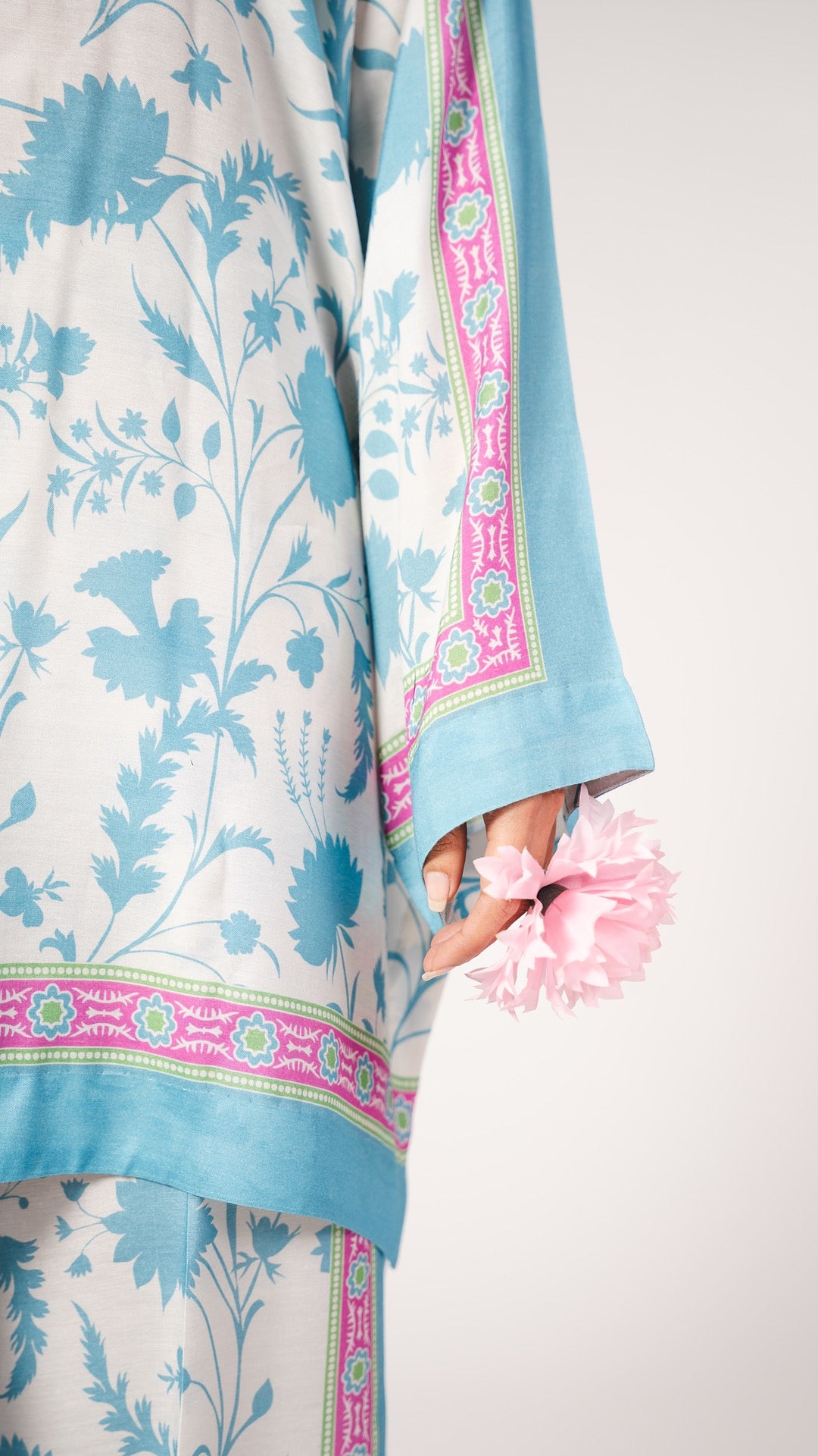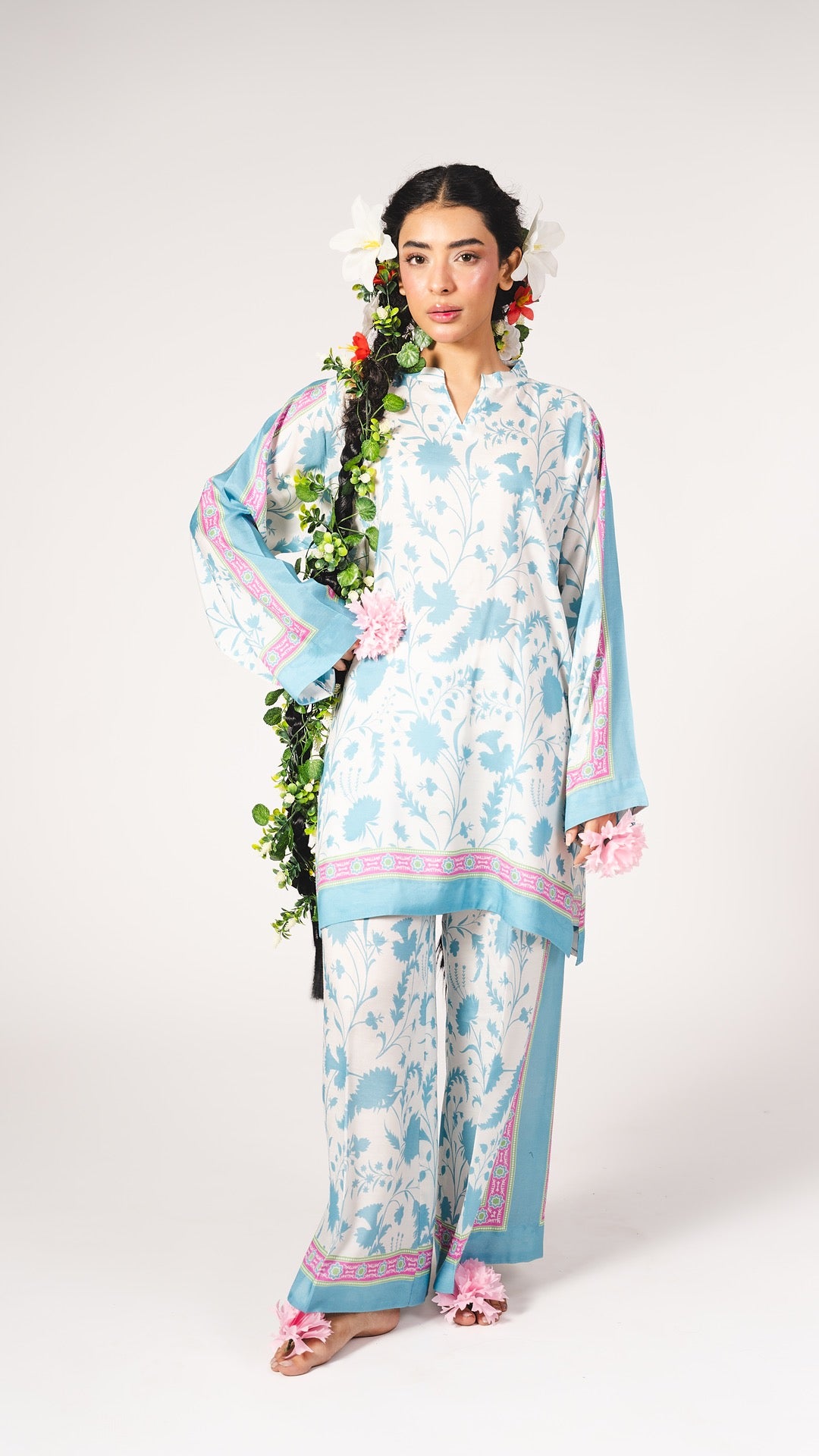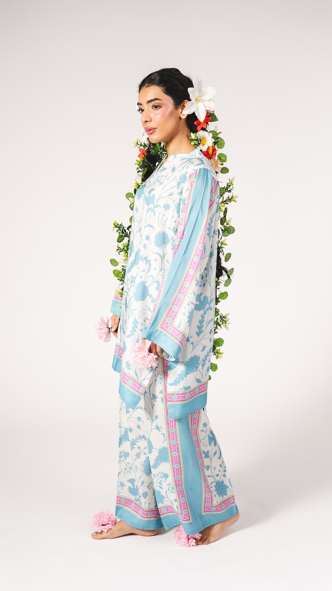 A gentle whisper of bloom and breeze, Bluebell captures the quiet poetry of early morning light. Designed in soft sky-toned florals, this set carries the ease of a drifting petal - effortlessly feminine. Finished with refined borders and an effortlessly flowy silhouette, it’s a serene, feminine essential for everyday elegance.
